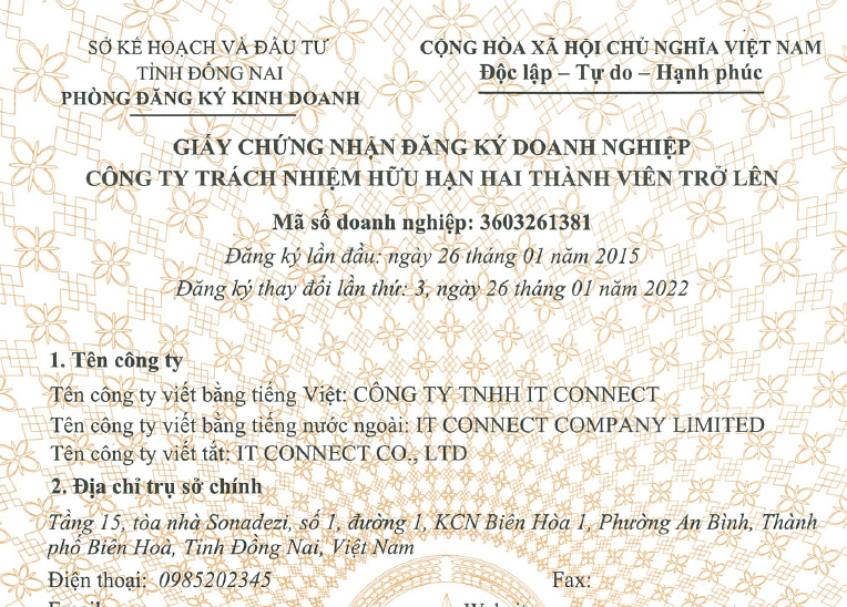 Sau 7 năm hoạt động, Tin Nhật Huy chính thức đổi tên thành CÔNG TY TNHH IT CONNECT vào ngày 26/01/2022