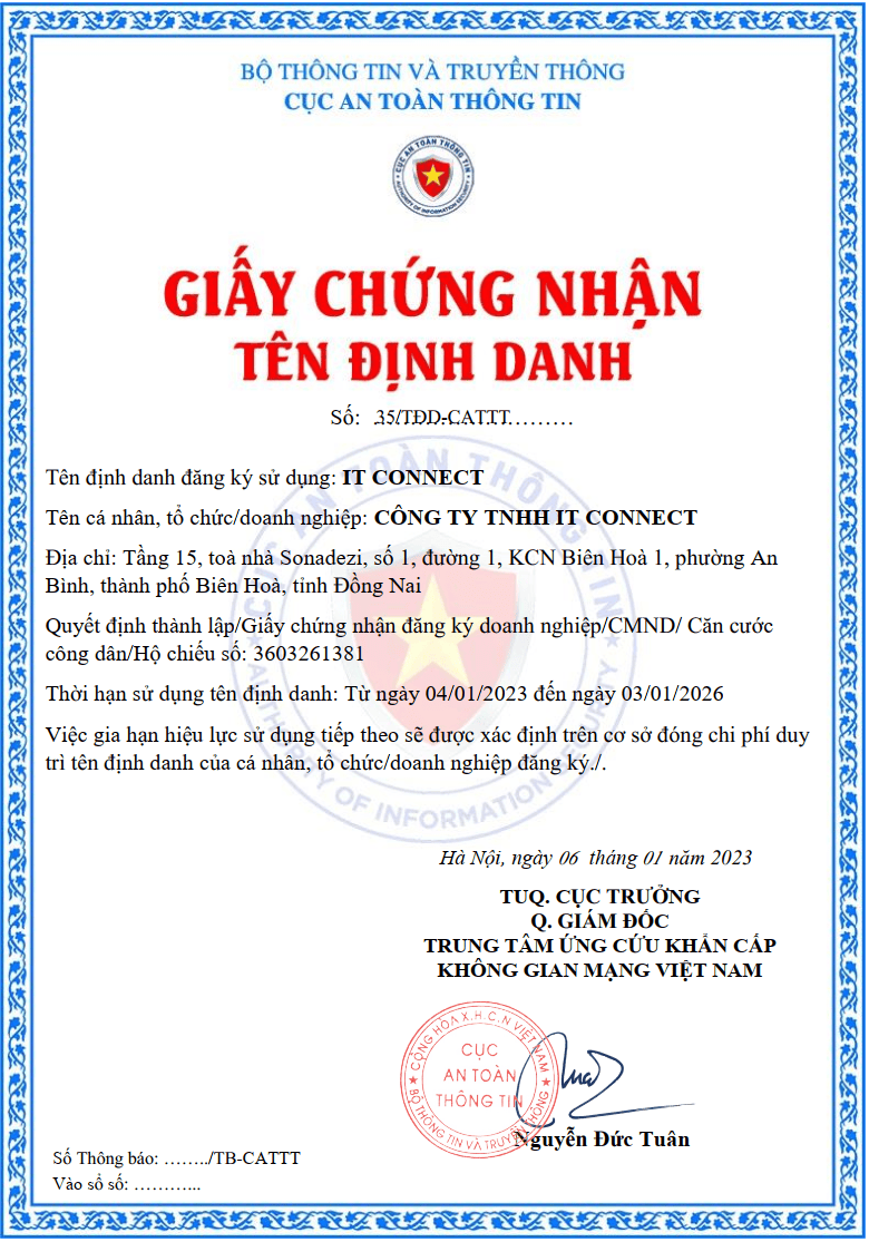 Công ty TNHH IT Connect chính thức được cấp tên định danh IT Connect từ Bộ Thông Tin và Truyền Thông.