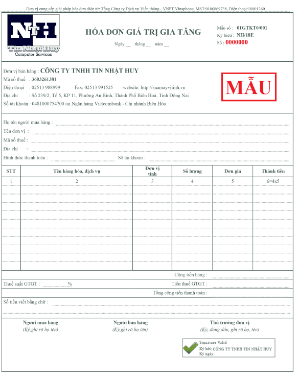 Bắt đầu từ ngày 20/12/2018, công ty Tin Nhật Huy chính thức chuyển qua sử dụng hoá đơn điện tử. Nếu quý khách cần xuất hoá đơn cho dịch vụ sửa máy tính từ xa vui lòng cung cấp email và thông tin để chúng tôi xuất hoá đơn vào email của khách hàng.